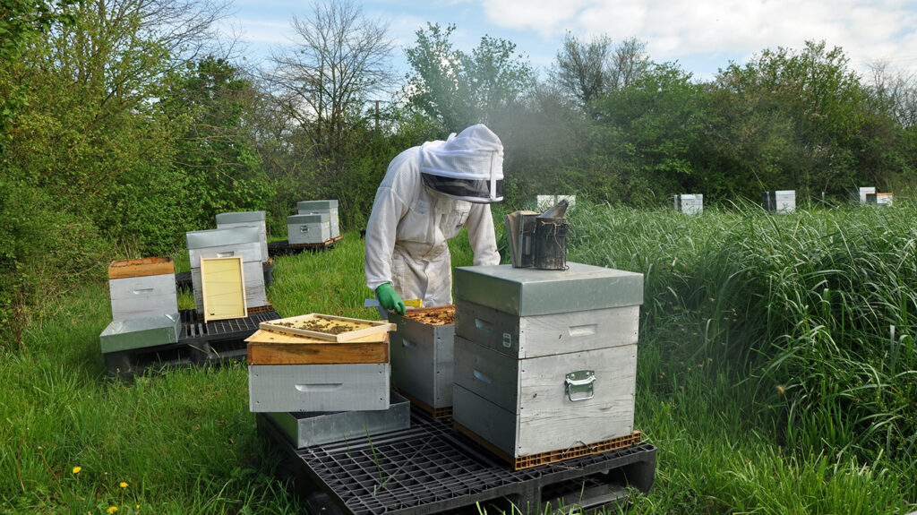 📸 Prise de vue lors de ma journée d’immersion au rucher. Ce moment m’a permis d’enrichir la démarche de création du site par une meilleure compréhension du quotidien de l’apiculteur.